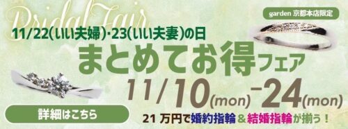 Garden(ガーデン)京都は、関西・京都最大級の婚約指輪、結婚指輪を取り扱うジュエリーショップです。京都でプロポーズをご検討の方もご相談ください!滋賀・神戸からのアクセスも便利!常時80種類以上のジュエリーブランドをご用意して、貴方のご来店をスタッフ一同心よりお待ち申し上げております。