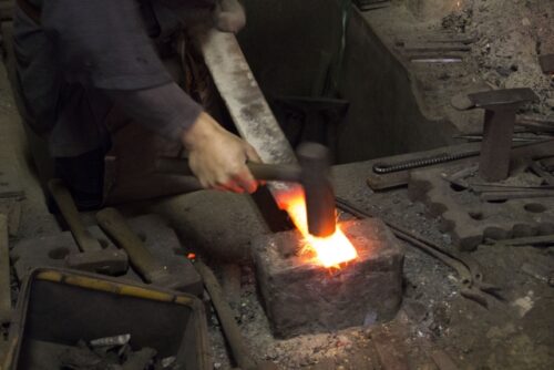 結婚指輪の製造する前に使用する貴金属に大きな力で圧力を加えて圧縮してから削り込む製法です。金属を圧縮することにより、結婚指輪の金属の密度が高くなり耐久性が増すのが特徴です。何度も強い圧力を加える鍛造製法でつくられる高密度の結婚指輪は一生着けてもゆがみにくい耐久性に優れています。内側から伸ばして作っていくことによって内側が滑らかになり、丸みを帯びた仕上げになります。そのため鍛造製法の結婚指輪は指通りが良くなり、するっと指にフィットする気持ち良さも魅力の一つです。