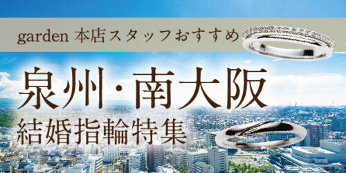 南大阪・泉南市在住の結婚指輪をお探しの方必見!堺市、泉南市、泉佐野市、泉南群熊取町、貝塚市、岸和田市、泉大津市、和泉市、泉北郡忠岡町お住まいの方へ。