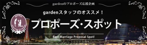gardenスタッフが厳選したサプライズにおすすめのプロポーズスポットをご紹介。一生に一度の大切な時間を素敵な場所で思い出に残るプロポーズを。
