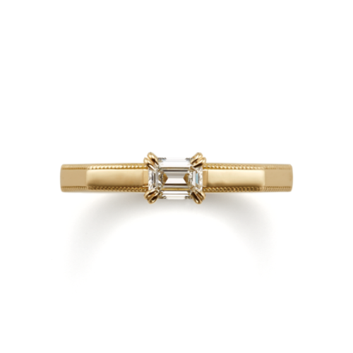 ORECCHIOの顔とも言えるエメラルドカットダイヤモンドは、ダイヤモンドの角を落とし八角形のような形にカットしたダイヤモンドを指します。バケットカットダイヤモンドは角を残したカットでエメラルドカットダイヤモンドよりシャープな印象です。ラウンドのダイヤモンドとの違いは、形はもちろん輝きに大きな違いがあります。分かりやすく例えるとラウンドは「キラキラで華やか」エメラルドカット・バケットカットは「透明感があり上品」というような、落ち着いた輝きがエメラルドカット・バケットカットの特徴です。婚約指輪も結婚指輪も「THE」といった感じより、カジュアルで少しファッション要素があるようなデザインが好みの方にORECCHIOは大人気です。