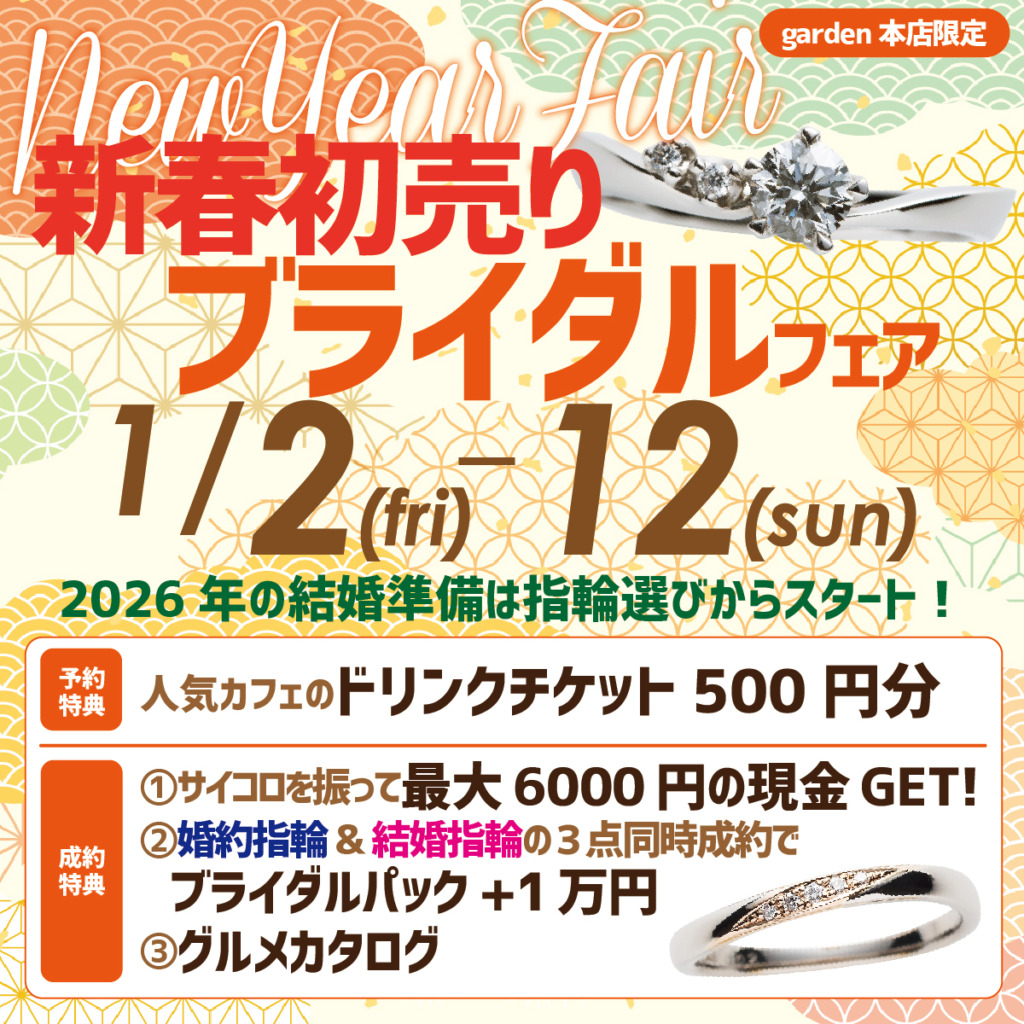 garden本店は、大阪(岸和田)で常時80種類以上のジュエリーブランド、婚約指輪・結婚指輪、プロポーズの指輪、フォトウェディング、記念日プレゼント、ファッションジュエリーの取り扱いが豊富な、関西・大阪最大級のジュエリーショップです。
