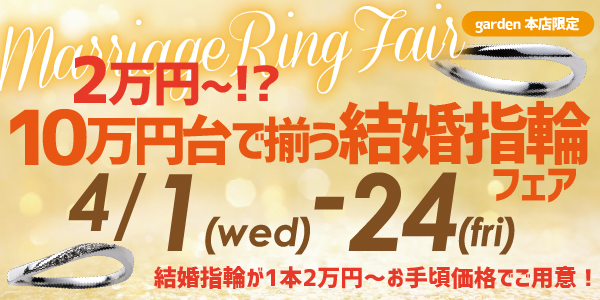 10万円で揃う結婚指輪フェア開催中!@garden本店(南大阪・岸和田市)