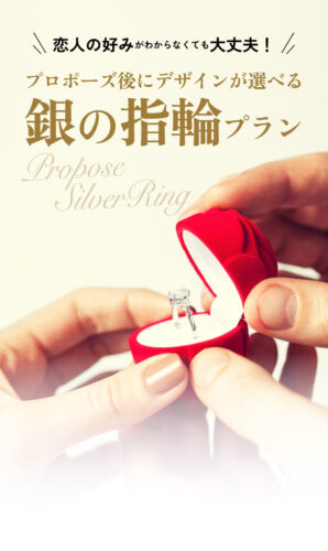 プロポーズには婚約指輪が必要。でも、彼女の好みに合うデザインを贈りたい…そんな悩みを解決するのが『銀の指輪』プラン。